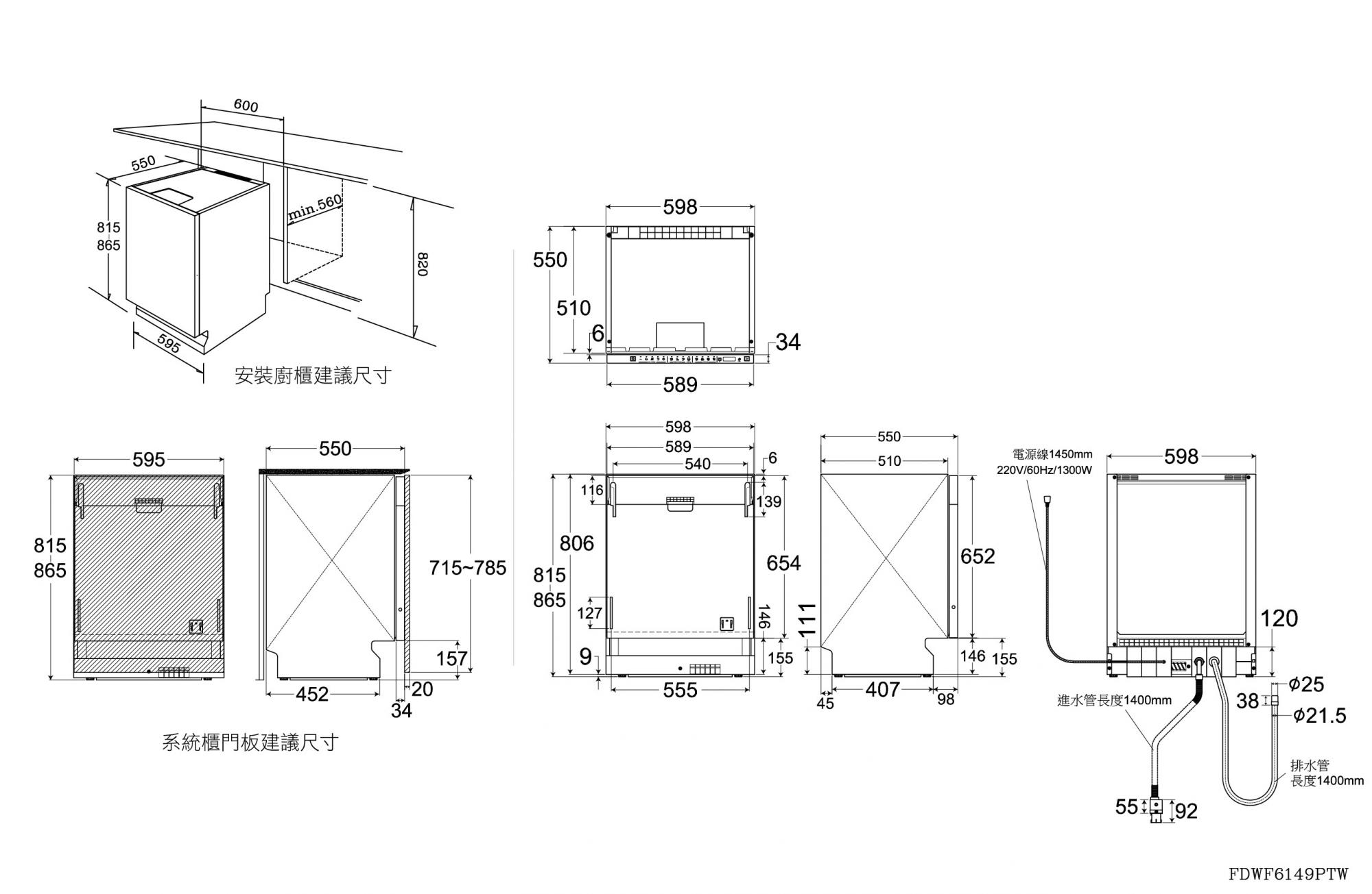 門板最大尺寸:785mm / 踢腳板最低高度:60mm